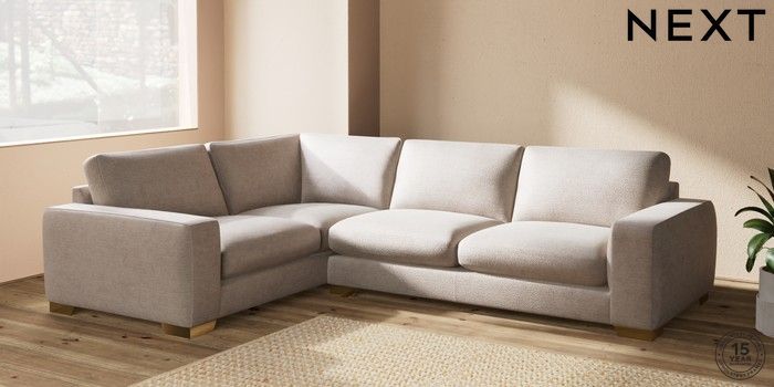 7.2.10 Houghton Deep Sit Large Corner Sofa - Left Hand Boucle Chenille Light Natural Large Square Angle - Brushed Brass | Made Click here to use our website with more accessibility support, for example screen readers