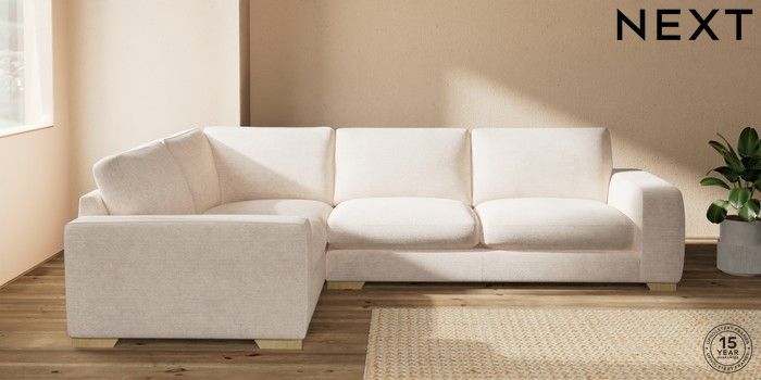 7.2.10 Houghton Deep Sit Large Corner Sofa - Left Hand Boucle Chenille Oyster Large Square Angle - Light | Made Click here to use our website with more accessibility support, for example screen readers