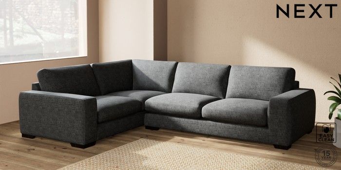7.2.10 Houghton Deep Sit Large Corner Sofa - Left Hand Boucle Weave Easy Clean Charcoal Grey Large Square Angle - Dark | Made Click here to use our website with more accessibility support, for example screen readers