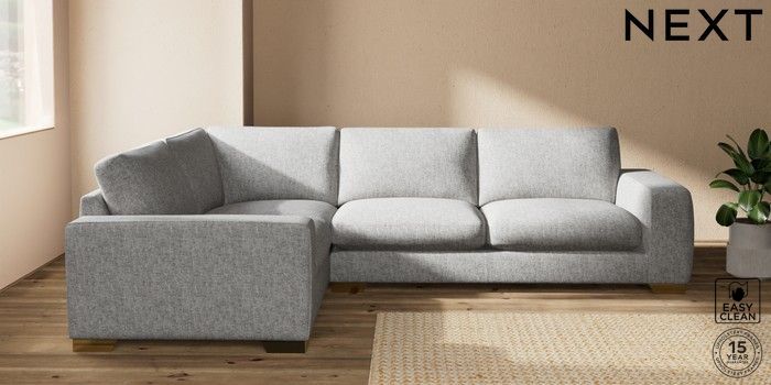 7.2.10 Houghton Deep Sit Large Corner Sofa - Left Hand Chunky Boucle Easy Clean Light Grey Large Square Angle - Brushed Brass | Made Click here to use our website with more accessibility support, for example screen readers