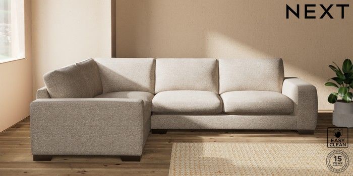 7.2.10 Houghton Deep Sit Large Corner Sofa - Left Hand Chunky Boucle Easy Clean Mid Natural Large Square Angle - Gunmetal | Made Click here to use our website with more accessibility support, for example screen readers