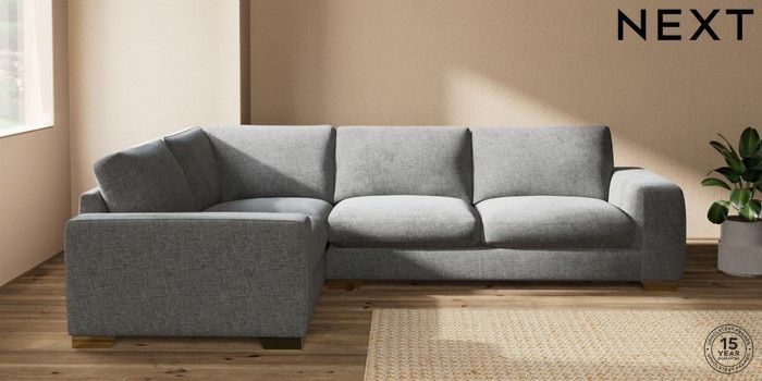 7.2.10 Houghton Deep Sit Large Corner Sofa - Left Hand Chunky Chenille Dark Grey Large Square Angle - Brushed Brass | Made Click here to use our website with more accessibility support, for example screen readers