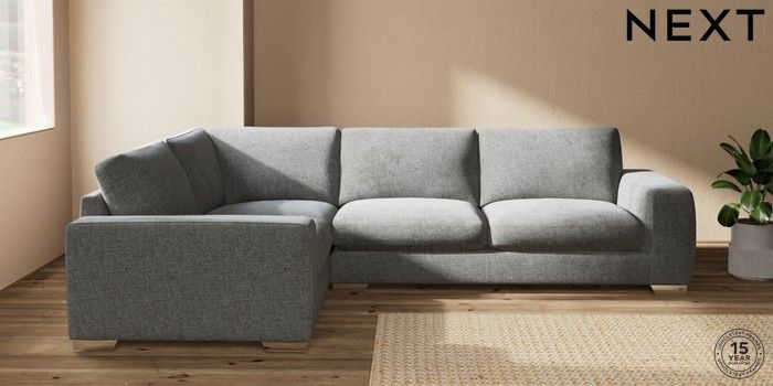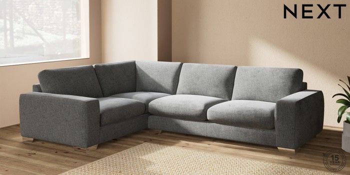 7.2.10 Houghton Deep Sit Large Corner Sofa - Left Hand Chunky Chenille Dark Grey Large Square Angle - Chrome Metal | Made Click here to use our website with more accessibility support, for example screen readers
