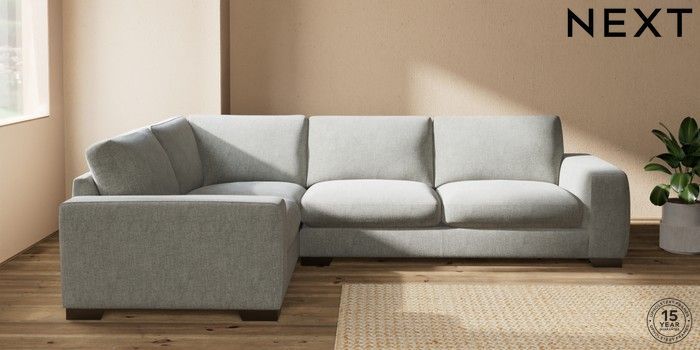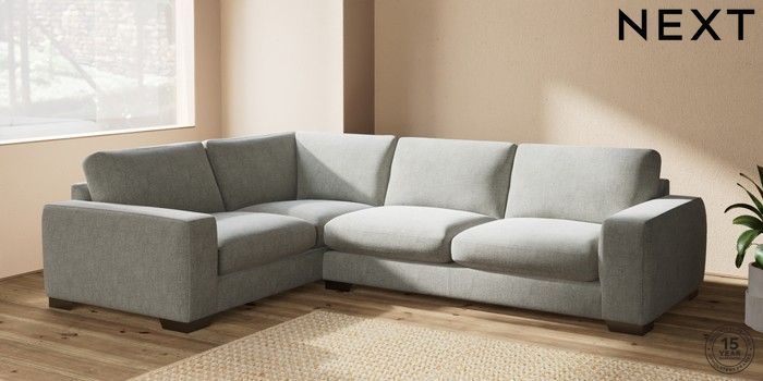 7.2.10 Houghton Deep Sit Large Corner Sofa - Left Hand Chunky Chenille Light Grey Large Square Angle - Gunmetal | Made Click here to use our website with more accessibility support, for example screen readers