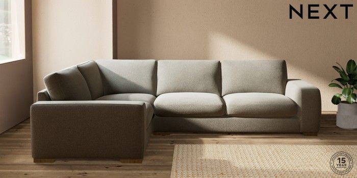 7.2.10 Houghton Deep Sit Large Corner Sofa - Left Hand Chunky Marl Light Olive Green Large Square Angle - Mid | Made Click here to use our website with more accessibility support, for example screen readers
