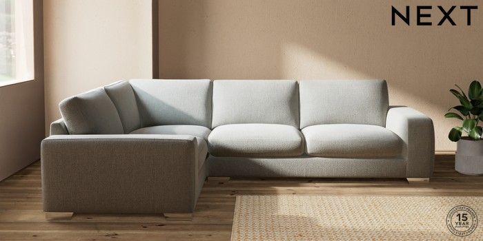 7.2.10 Houghton Deep Sit Large Corner Sofa - Left Hand Chunky Texture Dove Large Square Angle - Chrome Metal | Made Click here to use our website with more accessibility support, for example screen readers