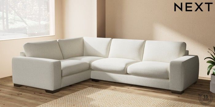 7.2.10 Houghton Deep Sit Large Corner Sofa - Left Hand Chunky Texture Oyster Large Square Angle - Gunmetal | Made Click here to use our website with more accessibility support, for example screen readers