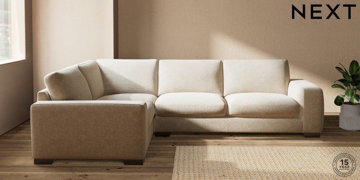 7.2.10 Houghton Deep Sit Large Corner Sofa - Left Hand Chunky Weave Cream Large Square Angle - Gunmetal | Made Click here to use our website with more accessibility support, for example screen readers