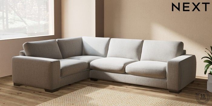 7.2.10 Houghton Deep Sit Large Corner Sofa - Left Hand Chunky Weave Dove Grey Large Square Angle - Gunmetal | Made Click here to use our website with more accessibility support, for example screen readers