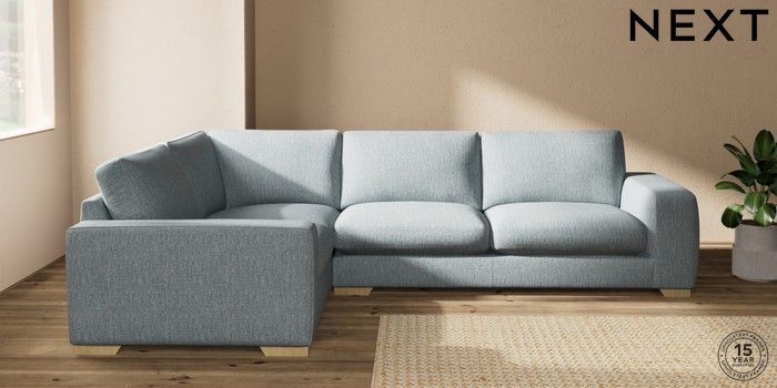 7.2.10 Houghton Deep Sit Large Corner Sofa - Left Hand Chunky Weave Mid Blue Large Square Angle - Light | Made Click here to use our website with more accessibility support, for example screen readers