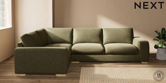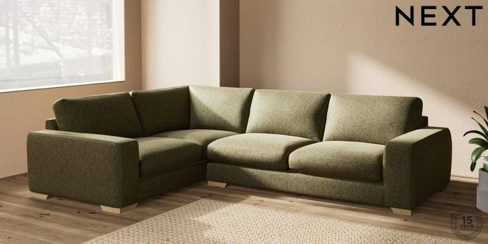 7.2.10 Houghton Deep Sit Large Corner Sofa - Left Hand Cotswold Chenille Dark Green Large Square Angle - Light | Made Click here to use our website with more accessibility support, for example screen readers