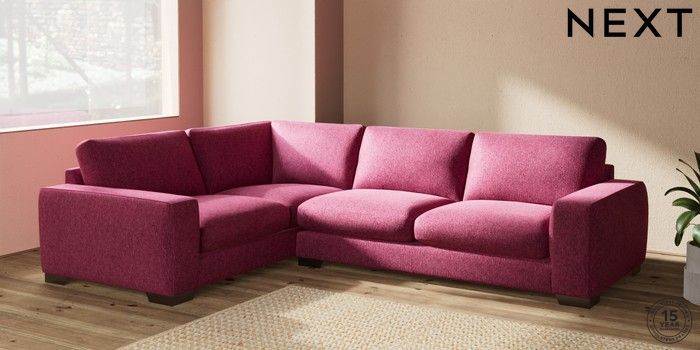 7.2.10 Houghton Deep Sit Large Corner Sofa - Left Hand Cotswold Chenille Dark Raspberry Pink Large Square Angle - Gunmetal | Made Click here to use our website with more accessibility support, for example screen readers