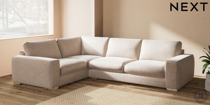 7.2.10 Houghton Deep Sit Large Corner Sofa - Left Hand Cotswold Chenille Light Natural Large Square Angle - Chrome Metal | Made Click here to use our website with more accessibility support, for example screen readers