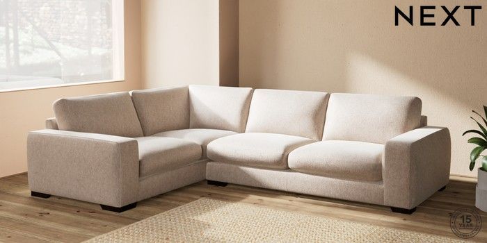 7.2.10 Houghton Deep Sit Large Corner Sofa - Left Hand Cotswold Chenille Light Natural Large Square Angle - Dark | Made Click here to use our website with more accessibility support, for example screen readers