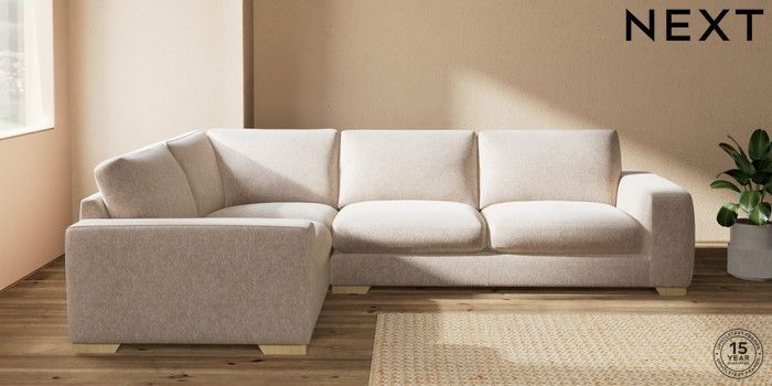 7.2.10 Houghton Deep Sit Large Corner Sofa - Left Hand Cotswold Chenille Light Natural Large Square Angle - Light | Made Click here to use our website with more accessibility support, for example screen readers
