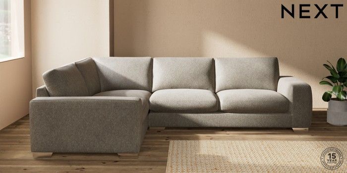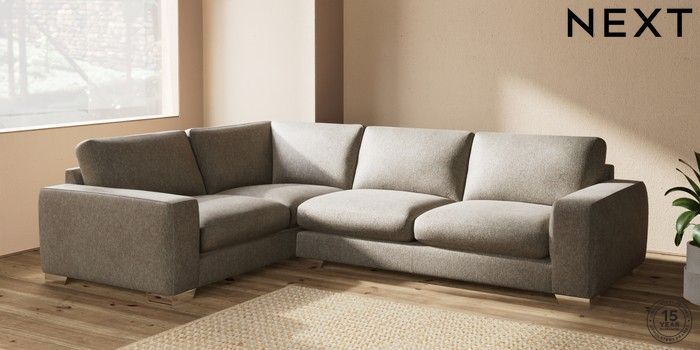 7.2.10 Houghton Deep Sit Large Corner Sofa - Left Hand Cotswold Chenille Mid Mink Brown Large Square Angle - Chrome Metal | Made Click here to use our website with more accessibility support, for example screen readers