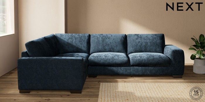7.2.10 Houghton Deep Sit Large Corner Sofa - Left Hand Distressed Velour Midnight Blue Large Square Angle - Gunmetal | Made Click here to use our website with more accessibility support, for example screen readers