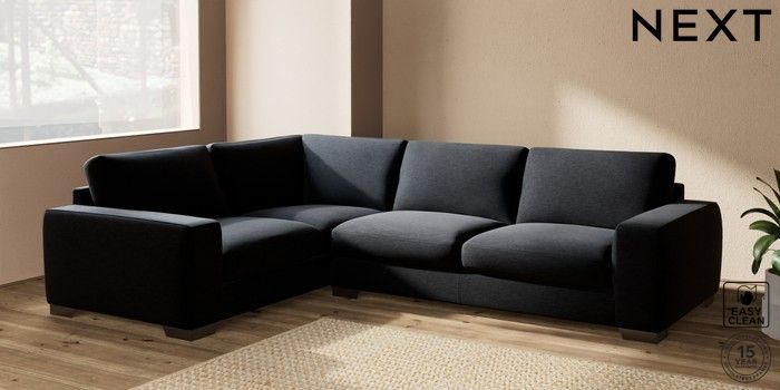 7.2.10 Houghton Deep Sit Large Corner Sofa - Left Hand Fine Chenille Easy Clean Black Large Square Angle - Gunmetal | Made Click here to use our website with more accessibility support, for example screen readers