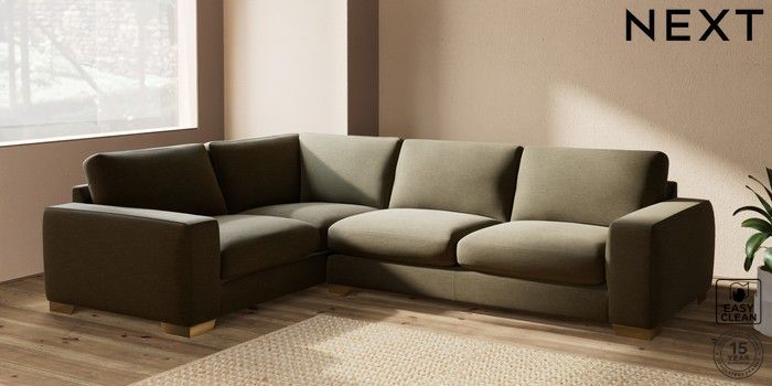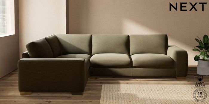 7.2.10 Houghton Deep Sit Large Corner Sofa - Left Hand Fine Chenille Easy Clean Dark Moss Green Large Square Angle - Brushed Brass | Made Click here to use our website with more accessibility support, for example screen readers