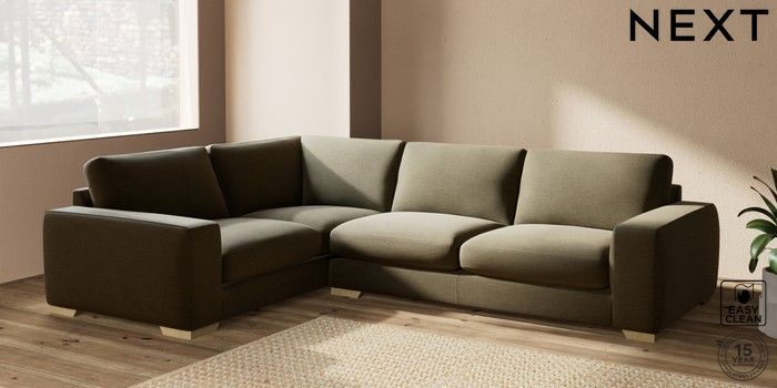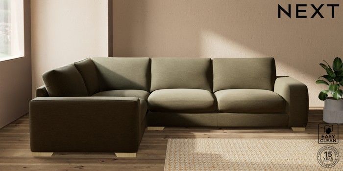 7.2.10 Houghton Deep Sit Large Corner Sofa - Left Hand Fine Chenille Easy Clean Dark Moss Green Large Square Angle - Light | Made Click here to use our website with more accessibility support, for example screen readers