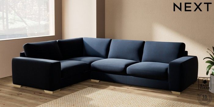 7.2.10 Houghton Deep Sit Large Corner Sofa - Left Hand Fine Chenille Easy Clean Dark Navy Blue Large Square Angle - Light | Made Click here to use our website with more accessibility support, for example screen readers