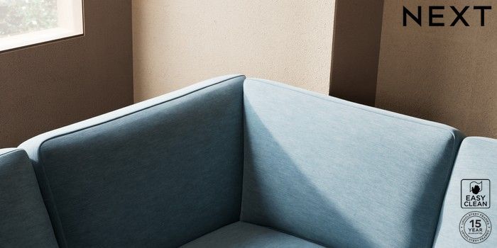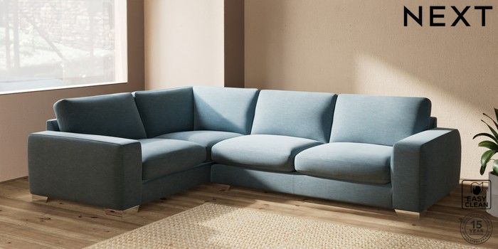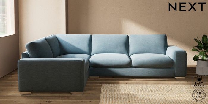 7.2.10 Houghton Deep Sit Large Corner Sofa - Left Hand Fine Chenille Easy Clean Mid Blue Large Square Angle - Chrome Metal | Made Click here to use our website with more accessibility support, for example screen readers