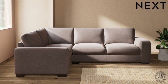 7.2.10 Houghton Deep Sit Large Corner Sofa - Left Hand Luxe Chenille Mink Brown Large Square Angle - Gunmetal | Made Click here to use our website with more accessibility support, for example screen readers