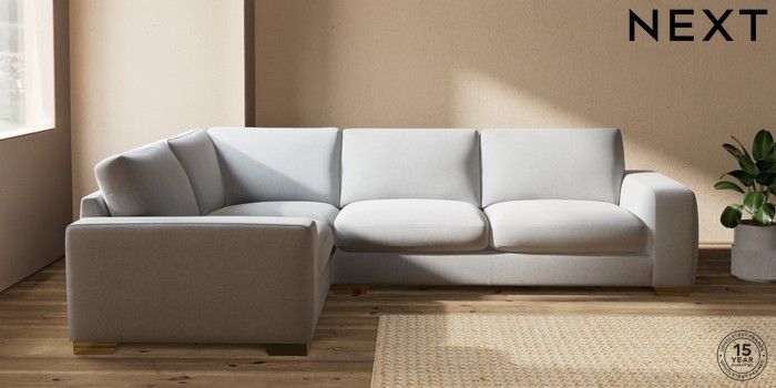7.2.10 Houghton Deep Sit Large Corner Sofa - Left Hand Natural Mix Light Grey Large Square Angle - Brushed Brass | Made Click here to use our website with more accessibility support, for example screen readers