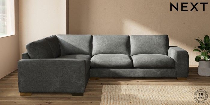 7.2.10 Houghton Deep Sit Large Corner Sofa - Left Hand Plush Chenille Dark Grey Large Square Angle - Brushed Brass | Made Click here to use our website with more accessibility support, for example screen readers