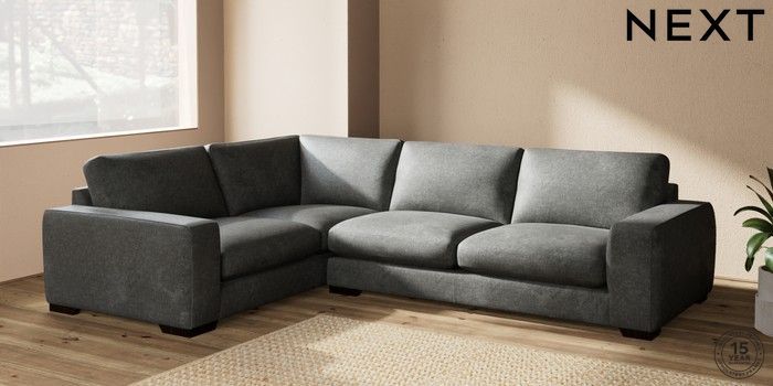 7.2.10 Houghton Deep Sit Large Corner Sofa - Left Hand Plush Chenille Dark Grey Large Square Angle - Dark | Made Click here to use our website with more accessibility support, for example screen readers
