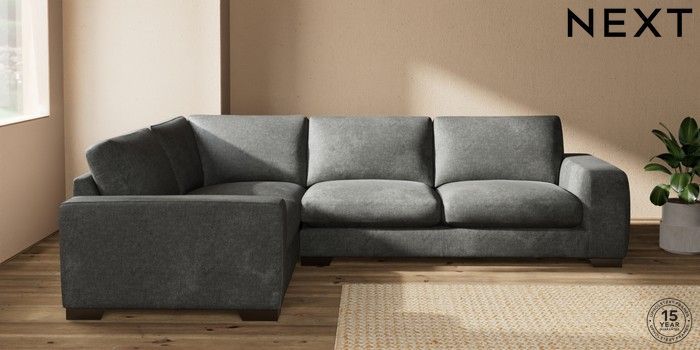 7.2.10 Houghton Deep Sit Large Corner Sofa - Left Hand Plush Chenille Dark Grey Large Square Angle - Gunmetal | Made Click here to use our website with more accessibility support, for example screen readers