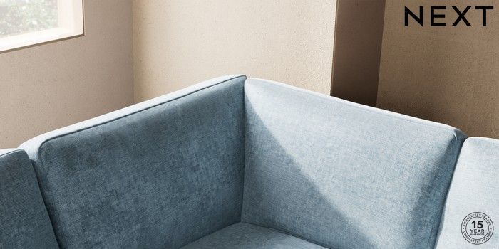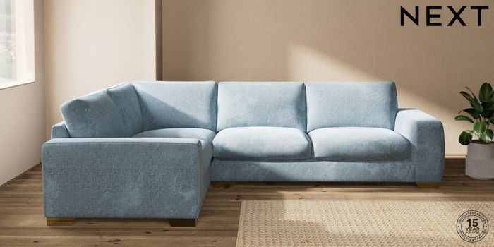 7.2.10 Houghton Deep Sit Large Corner Sofa - Left Hand Plush Chenille Light Blue Large Square Angle - Brushed Brass | Made Click here to use our website with more accessibility support, for example screen readers