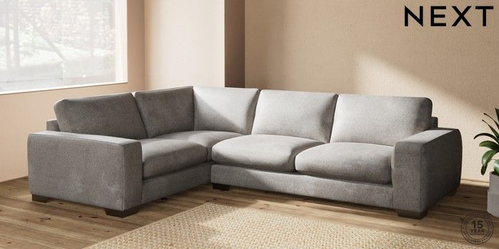 7.2.10 Houghton Deep Sit Large Corner Sofa - Left Hand Plush Chenille Light Grey Large Square Angle - Gunmetal | Made Click here to use our website with more accessibility support, for example screen readers