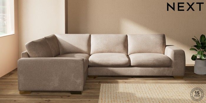 7.2.10 Houghton Deep Sit Large Corner Sofa - Left Hand Plush Chenille Mid Natural Large Square Angle - Brushed Brass | Made Click here to use our website with more accessibility support, for example screen readers