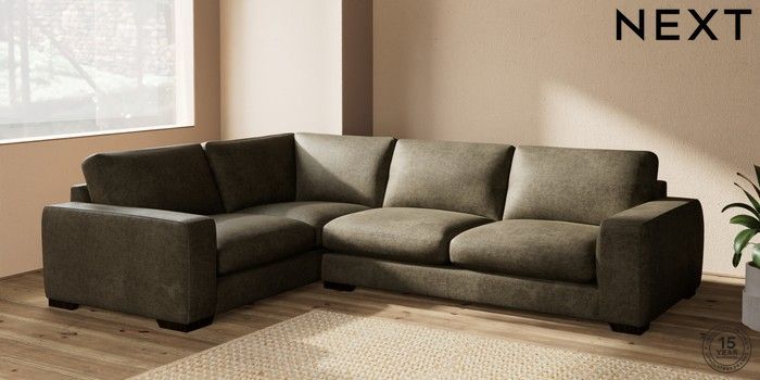7.2.10 Houghton Deep Sit Large Corner Sofa - Left Hand Plush Chenille Moss Green Large Square Angle - Dark | Made Click here to use our website with more accessibility support, for example screen readers
