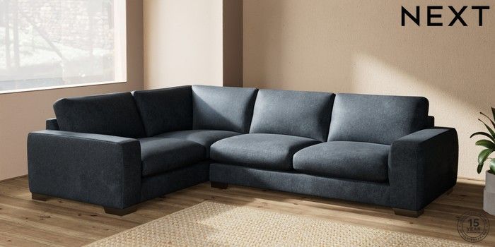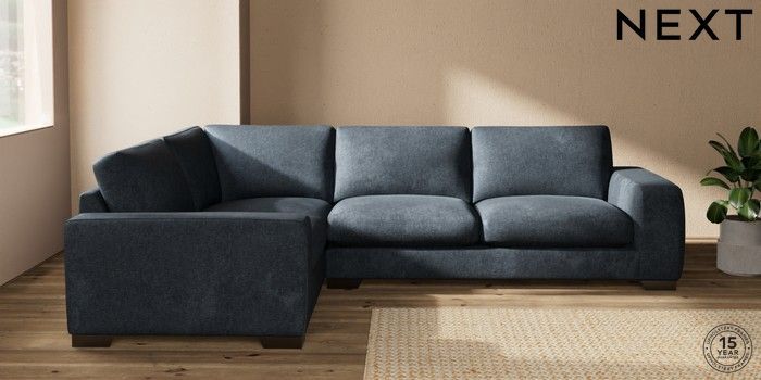 7.2.10 Houghton Deep Sit Large Corner Sofa - Left Hand Plush Chenille Slate Blue Large Square Angle - Gunmetal | Made Click here to use our website with more accessibility support, for example screen readers