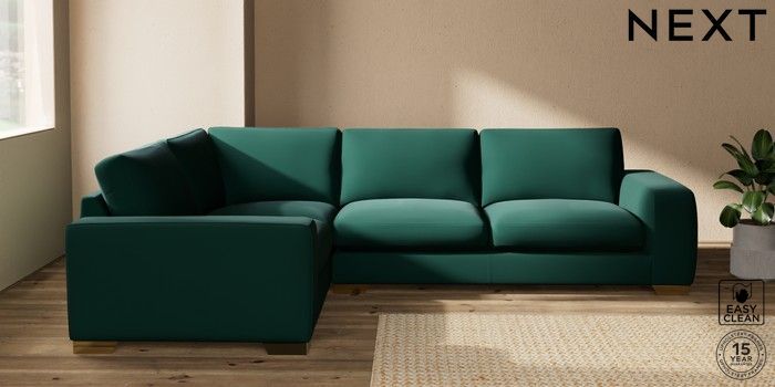 7.2.10 Houghton Deep Sit Large Corner Sofa - Left Hand Plush Velvet Easy Clean Bottle Green Large Square Angle - Brushed Brass | Made Click here to use our website with more accessibility support, for example screen readers