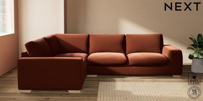 7.2.10 Houghton Deep Sit Large Corner Sofa - Left Hand Plush Velvet Easy Clean Ginger Orange Large Square Angle - Light | Made Click here to use our website with more accessibility support, for example screen readers