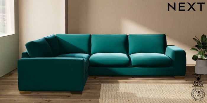 7.2.10 Houghton Deep Sit Large Corner Sofa - Left Hand Plush Velvet Easy Clean Juniper Green Large Square Angle - Brushed Brass | Made Click here to use our website with more accessibility support, for example screen readers