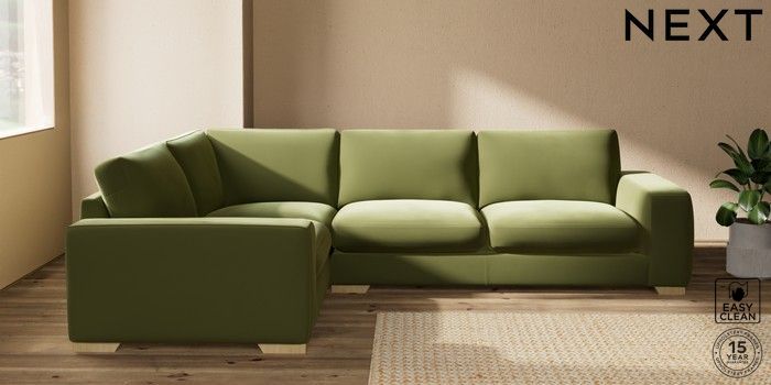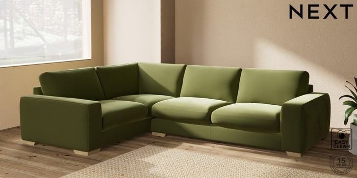 7.2.10 Houghton Deep Sit Large Corner Sofa - Left Hand Plush Velvet Easy Clean Mid Olive Green Large Square Angle - Light | Made Click here to use our website with more accessibility support, for example screen readers