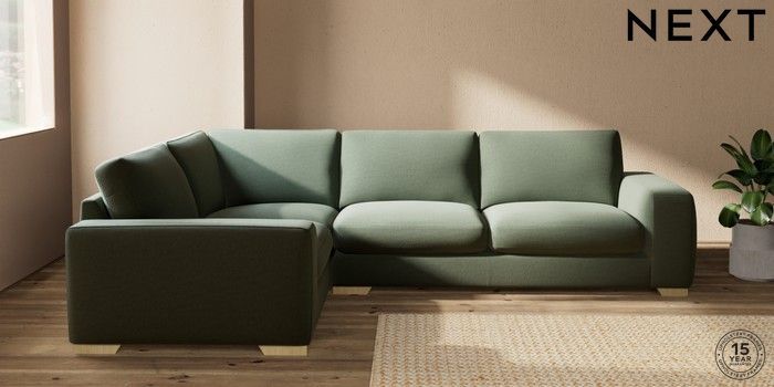 7.2.10 Houghton Deep Sit Large Corner Sofa - Left Hand Relaxed Linen Look Dark Green Large Square Angle - Light | Made Click here to use our website with more accessibility support, for example screen readers