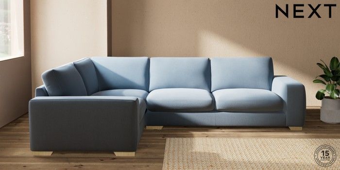 7.2.10 Houghton Deep Sit Large Corner Sofa - Left Hand Relaxed Linen Look Mid Blue Large Square Angle - Light | Made Click here to use our website with more accessibility support, for example screen readers