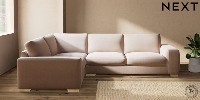 7.2.10 Houghton Deep Sit Large Corner Sofa - Left Hand Relaxed Linen Look Mid Natural Large Square Angle - Light | Made Click here to use our website with more accessibility support, for example screen readers