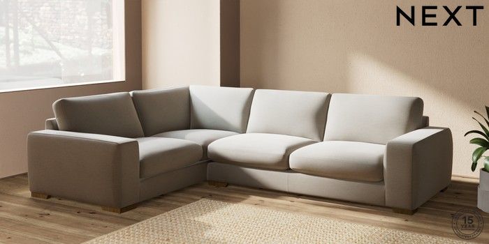 7.2.10 Houghton Deep Sit Large Corner Sofa - Left Hand Ripple Chenille Light Natural Large Square Angle - Mid | Made Click here to use our website with more accessibility support, for example screen readers