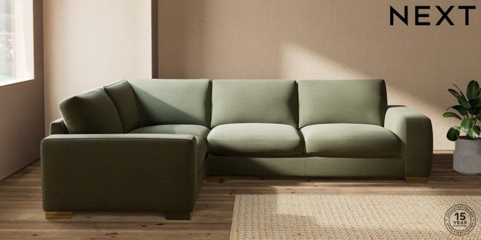 7.2.10 Houghton Deep Sit Large Corner Sofa - Left Hand Ripple Chenille Mid Moss Green Large Square Angle - Brushed Brass | Made Click here to use our website with more accessibility support, for example screen readers