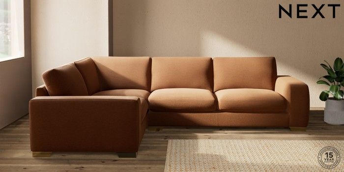 7.2.10 Houghton Deep Sit Large Corner Sofa - Left Hand Ripple Chenille Mid Rust Brown Large Square Angle - Brushed Brass | Made Click here to use our website with more accessibility support, for example screen readers