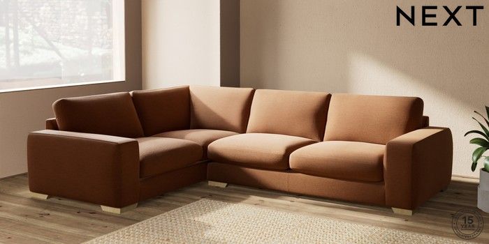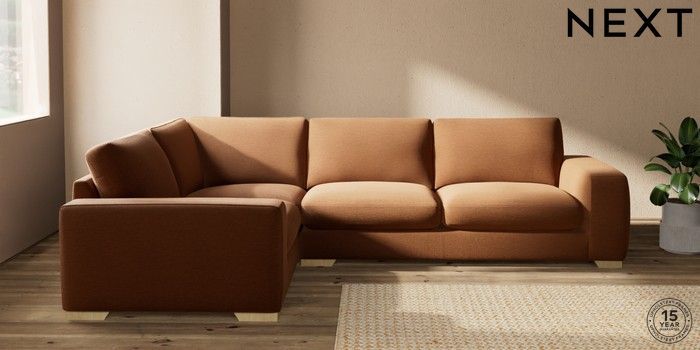 7.2.10 Houghton Deep Sit Large Corner Sofa - Left Hand Ripple Chenille Mid Rust Brown Large Square Angle - Light | Made Click here to use our website with more accessibility support, for example screen readers