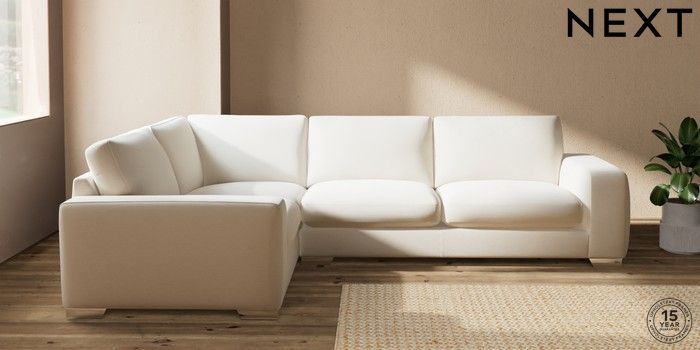 7.2.10 Houghton Deep Sit Large Corner Sofa - Left Hand Ripple Chenille Oyster Large Square Angle - Chrome Metal | Made Click here to use our website with more accessibility support, for example screen readers