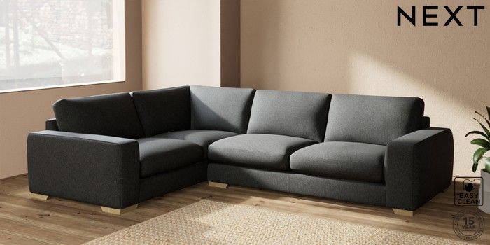 7.2.10 Houghton Deep Sit Large Corner Sofa - Left Hand Tweedy Blend Easy Clean Charcoal Grey Large Square Angle - Light | Made Click here to use our website with more accessibility support, for example screen readers