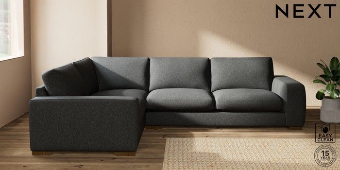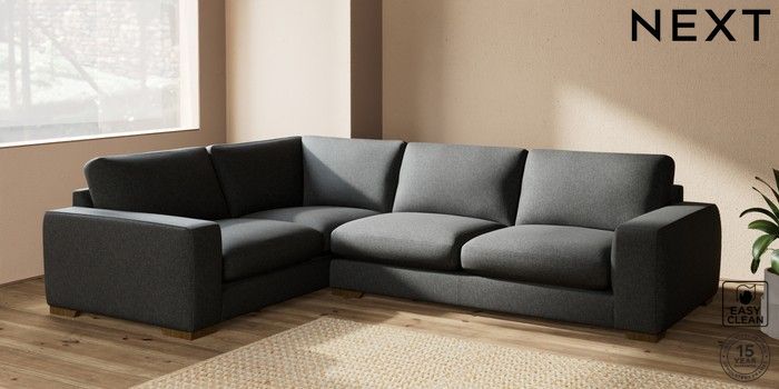7.2.10 Houghton Deep Sit Large Corner Sofa - Left Hand Tweedy Blend Easy Clean Charcoal Grey Large Square Angle - Mid | Made Click here to use our website with more accessibility support, for example screen readers